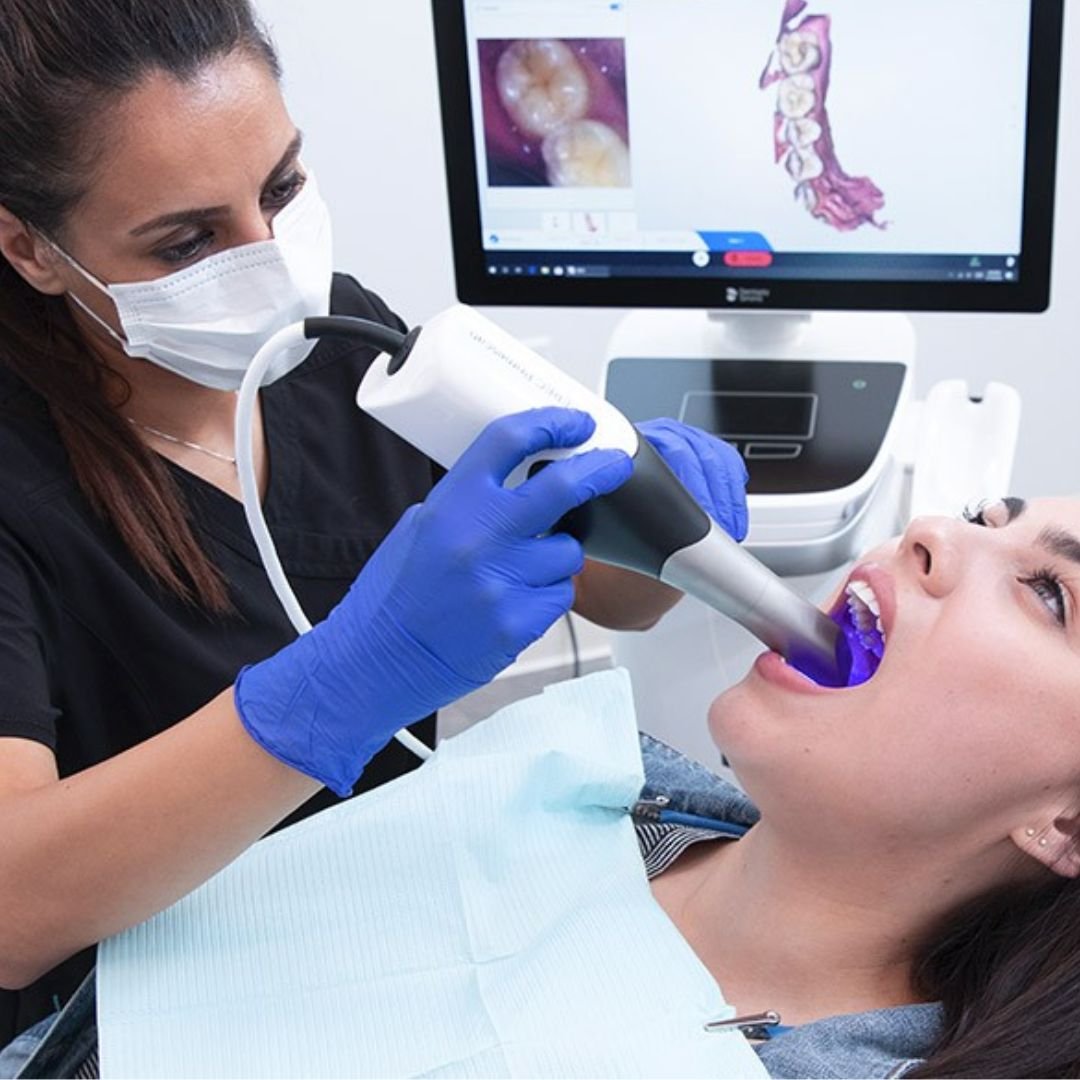 El escaneo digital utiliza un dispositivo avanzado que captura imágenes en 3D de tus dientes y encías en cuestión de minutos. Estas imágenes detalladas nos permiten ver en tiempo real la estructura de tu sonrisa y crear un diseño de tratamiento preciso, sin necesidad de moldes físicos.